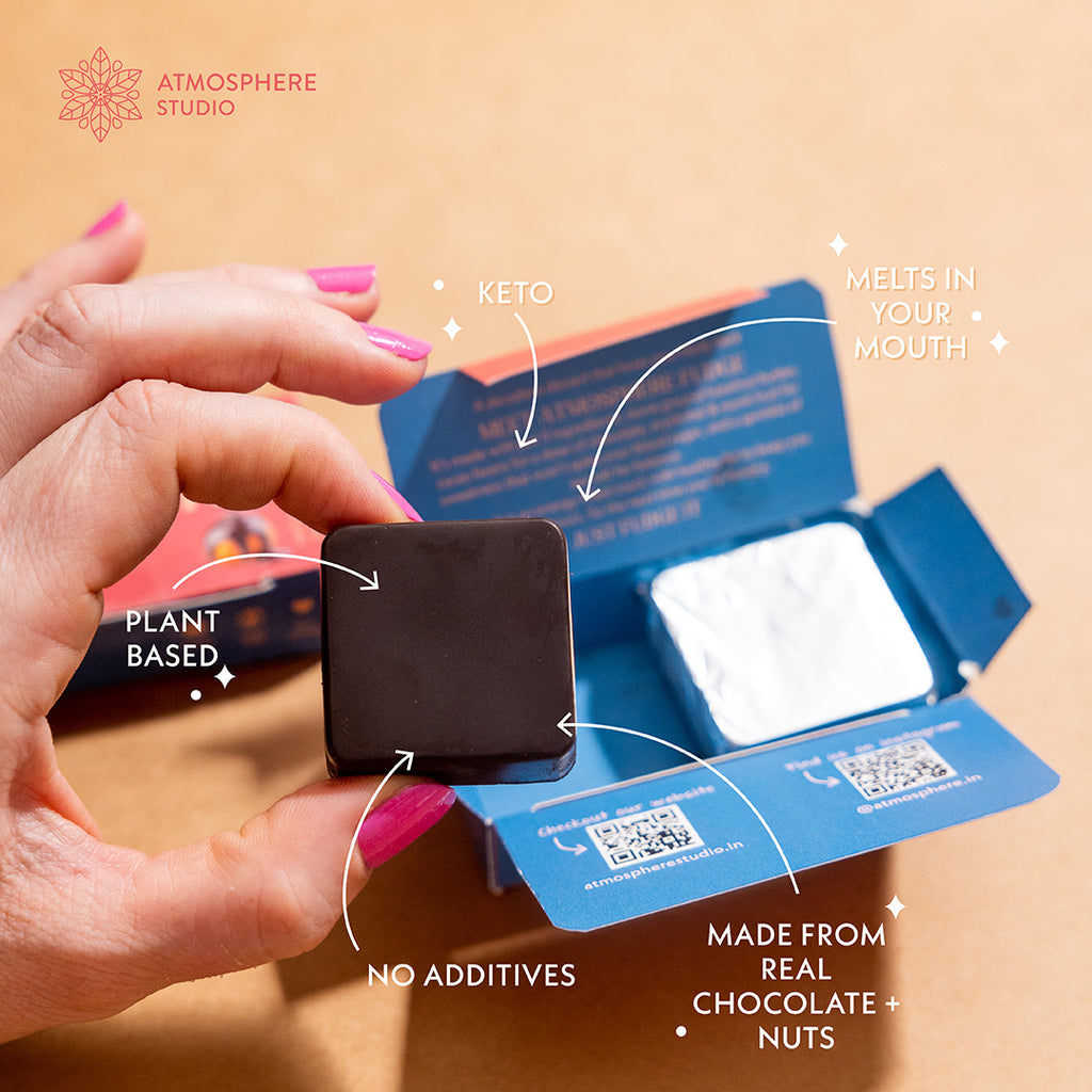 When your daily sugar cravings come in a bite-sized form of chocolatey indulgences, excuses like “just one more” will be absolutely guilt-free! We at Atmosphere Studio aim to make our products not just taste savoury, but also feel like a warm hug for your gut. We achieve this by using simple, organic, vegan-friendly and healthy ingredients that serve good fat without any processed sugars. Truly, the holy matrimony of an angelic chef and a celestial nutritionist to leave you recharged and drooling for more!