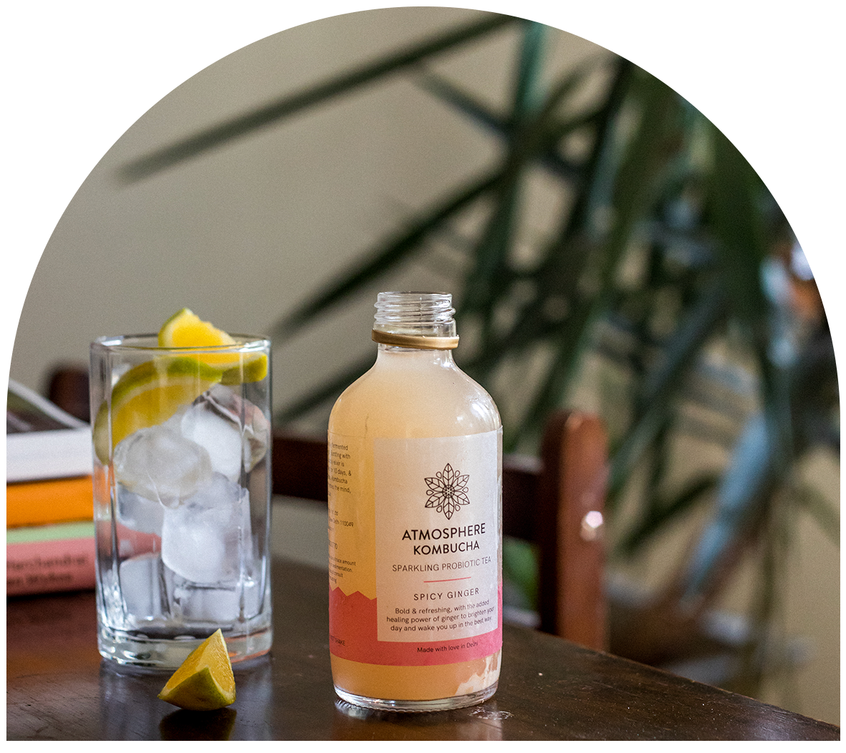 Kombucha is a green tea fermented with a symbiotic culture of yeast and bacteria (SCOBY)- resulting in a sparkling elixir of probiotic goodness. Infuse this with only the most magical combinations of fruits and herbs, you get your match made in flavour and gut-health heaven (also known as Atmosphere Studio in some languages).